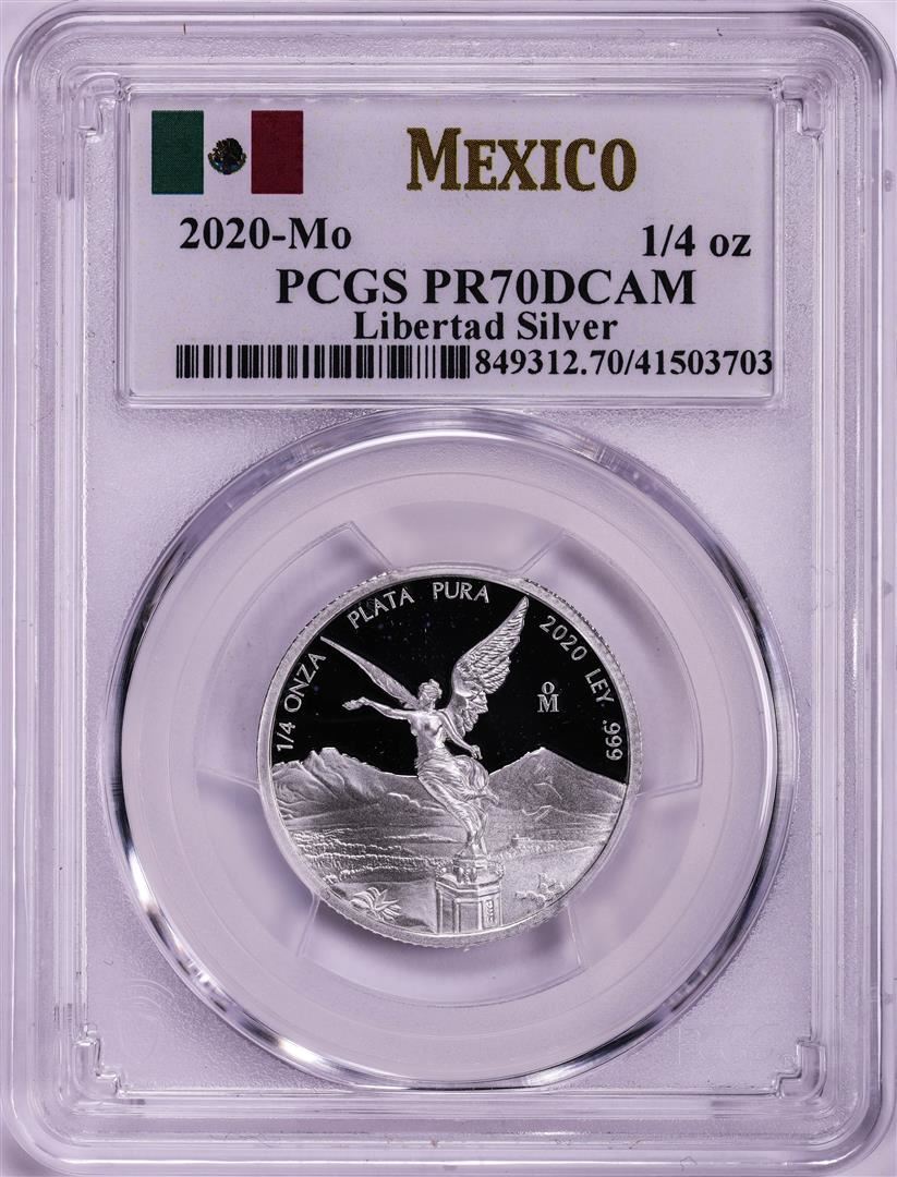 One 2020-Mo Mexico Proof 1/4 oz Silver Libertad Coin PCGS PR70DCAM. PCGS Graded.