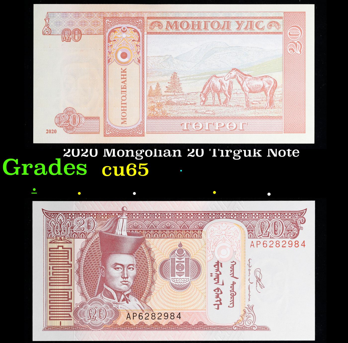 2020 Mongolian 20 Tirguk Note Grades Gem CU.