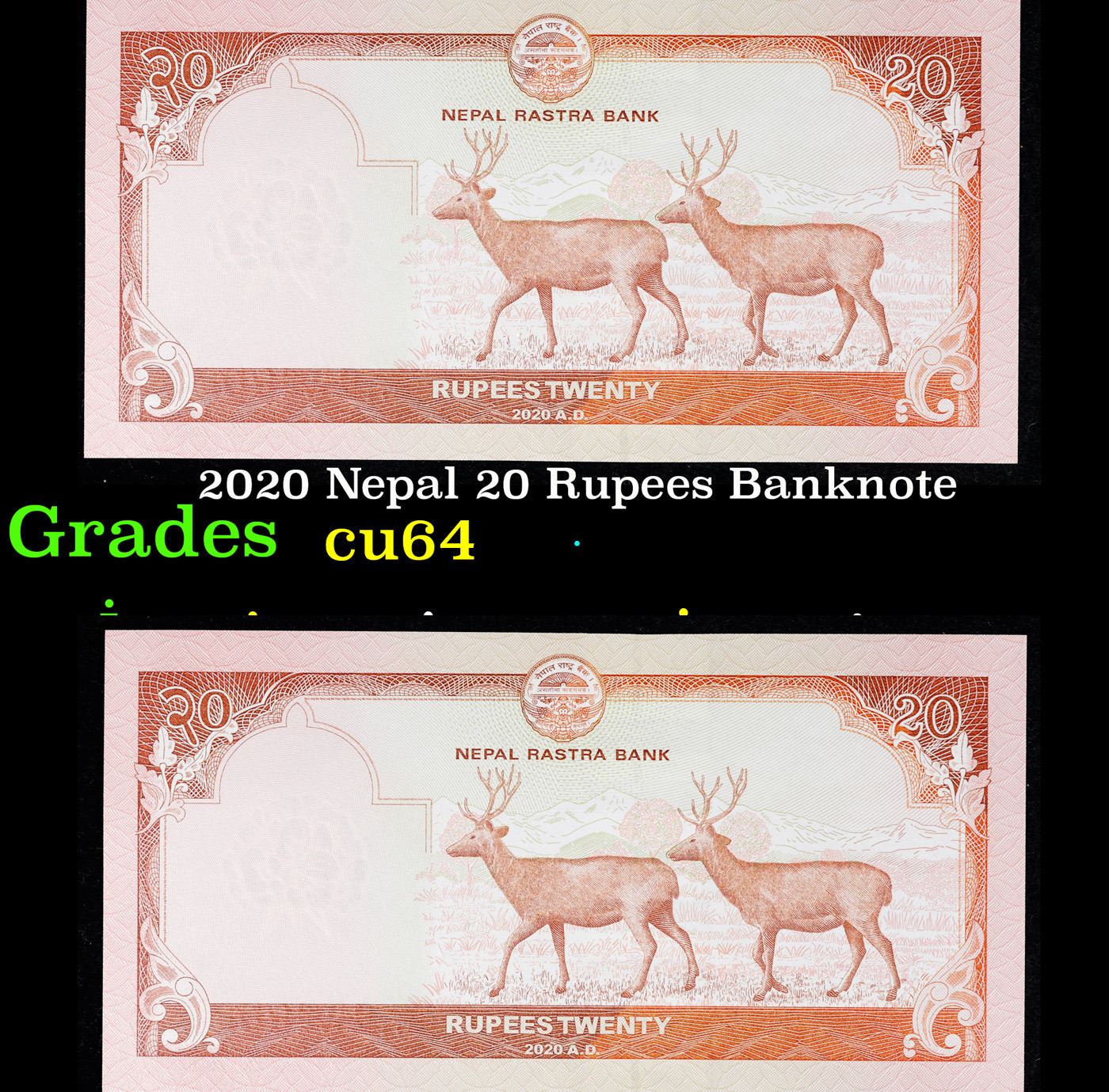2020 Nepal 20 Rupees Banknote Grades Choice CU.