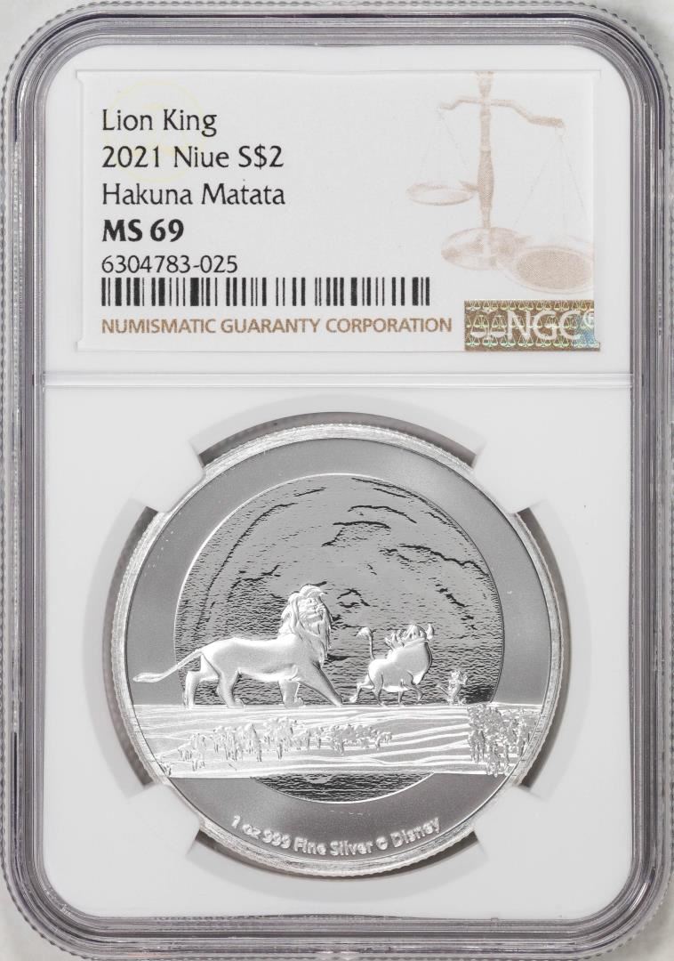 One 2020 Niue $2 Disney Lion King Hakuna Matata Silver Coin NGC MS69. NGC Certified.