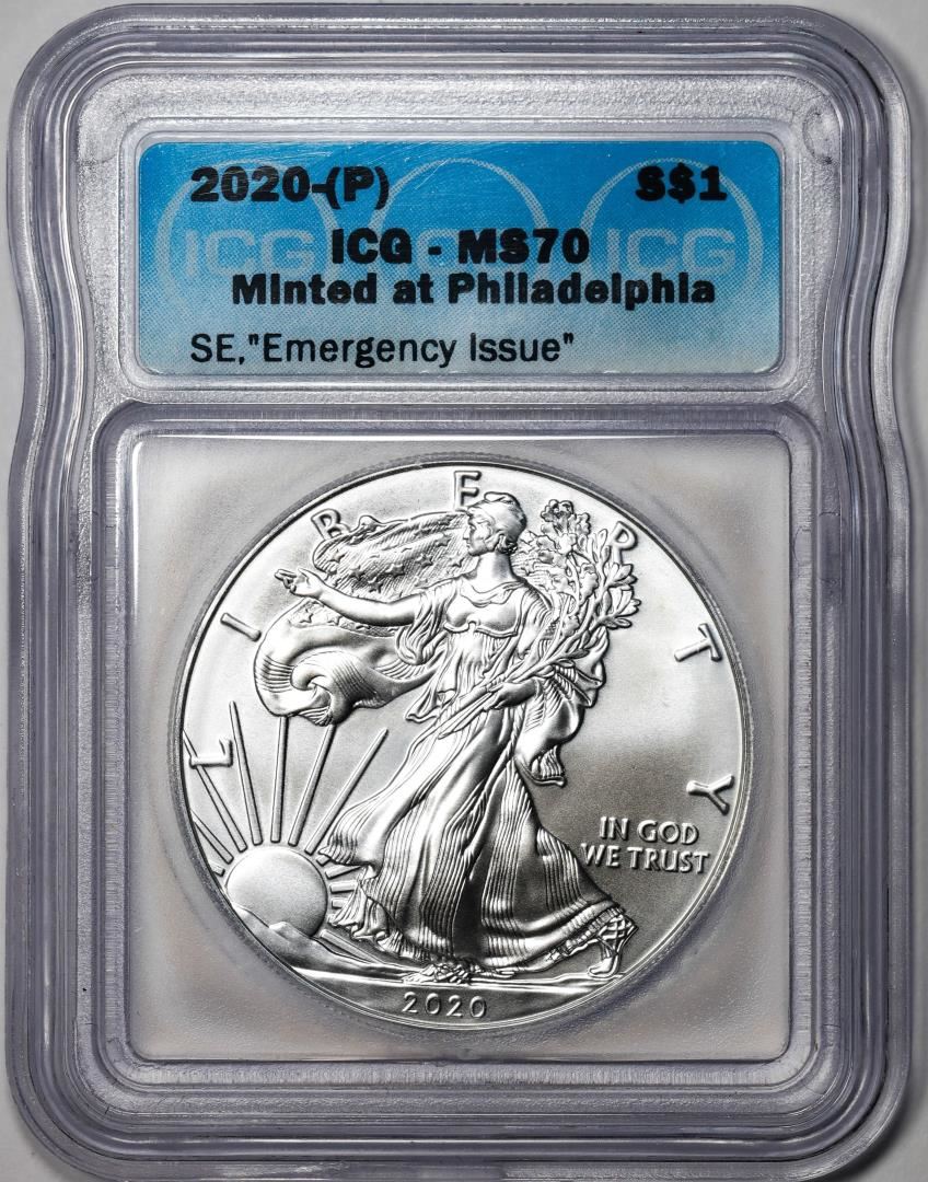 2020-(P) $1 American Silver Eagle Coin ICG MS70 Emergency Issue Philadelphia Mint