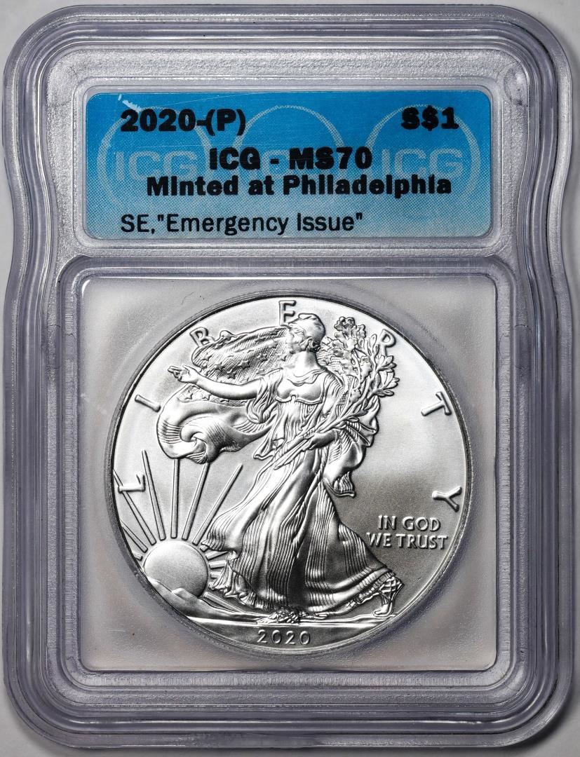 2020-(P) $1 American Silver Eagle Coin ICG MS70 Emergency Issue Philadelphia Mint