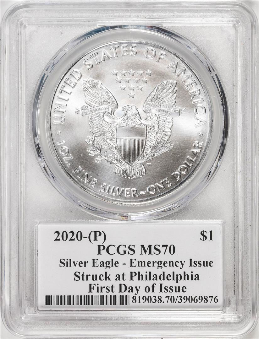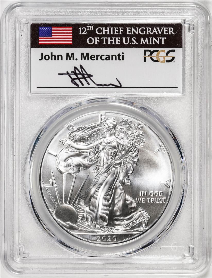 2020-(P) $1 American Silver Eagle Coin PCGS MS70 FDOI Mercanti Signature Philadelphia