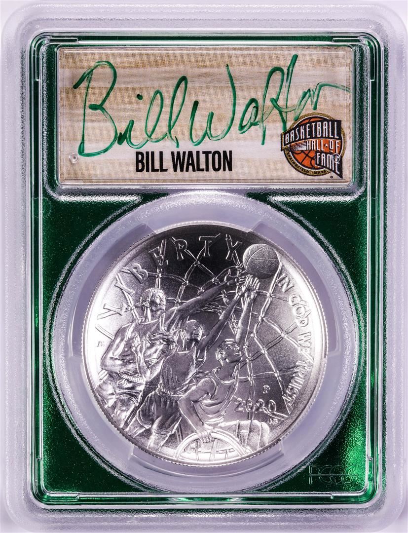 2020-P $1 Basketball HOF Silver Dollar Coin PCGS MS70 Bill Walton Signature FDOI
