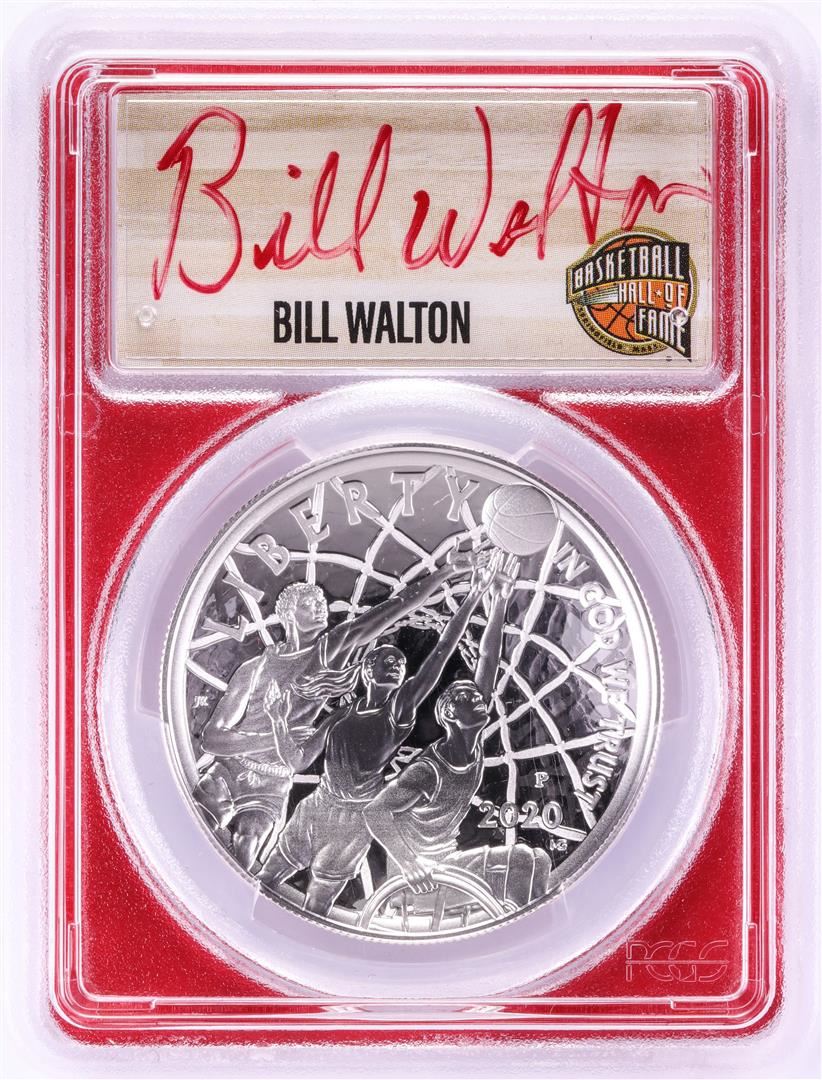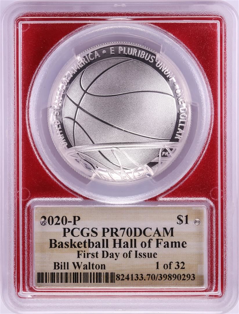 One 2020-P $1 Basketball HOF Silver Dollar Coin PCGS PR70DCAM Bill Walton Signature FDOI. PCGS Graded.