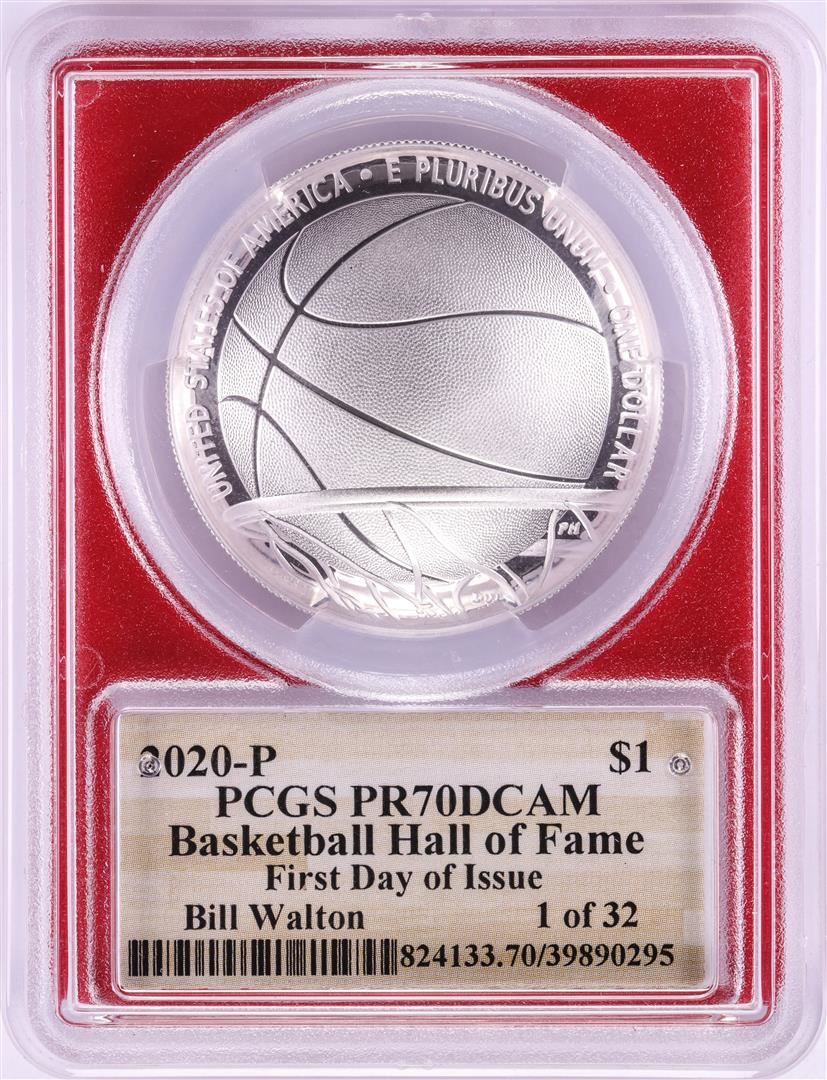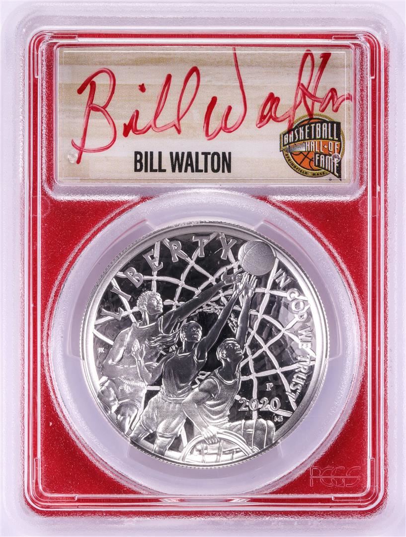One 2020-P $1 Basketball HOF Silver Dollar Coin PCGS PR70DCAM Bill Walton Signature FDOI. PCGS Graded.