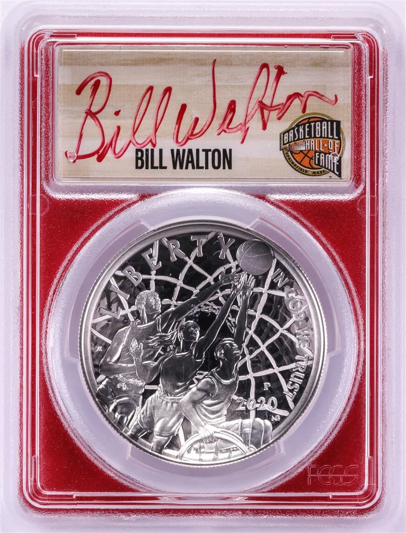 2020-P $1 Basketball HOF Silver Dollar Coin PCGS PR70DCAM Bill Walton Signature FDOI