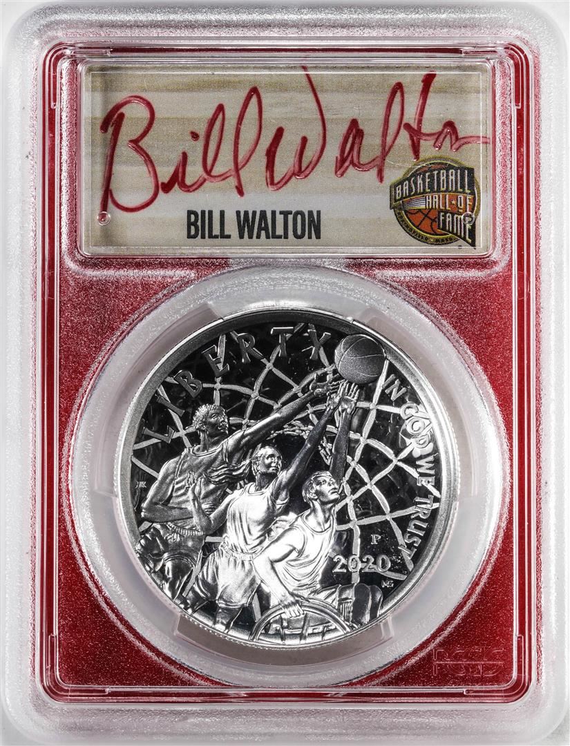 One 2020-P $1 Basketball HOF Silver Dollar Coin PCGS PR70DCAM Bill Walton Signature FDOI. PCGS Graded.