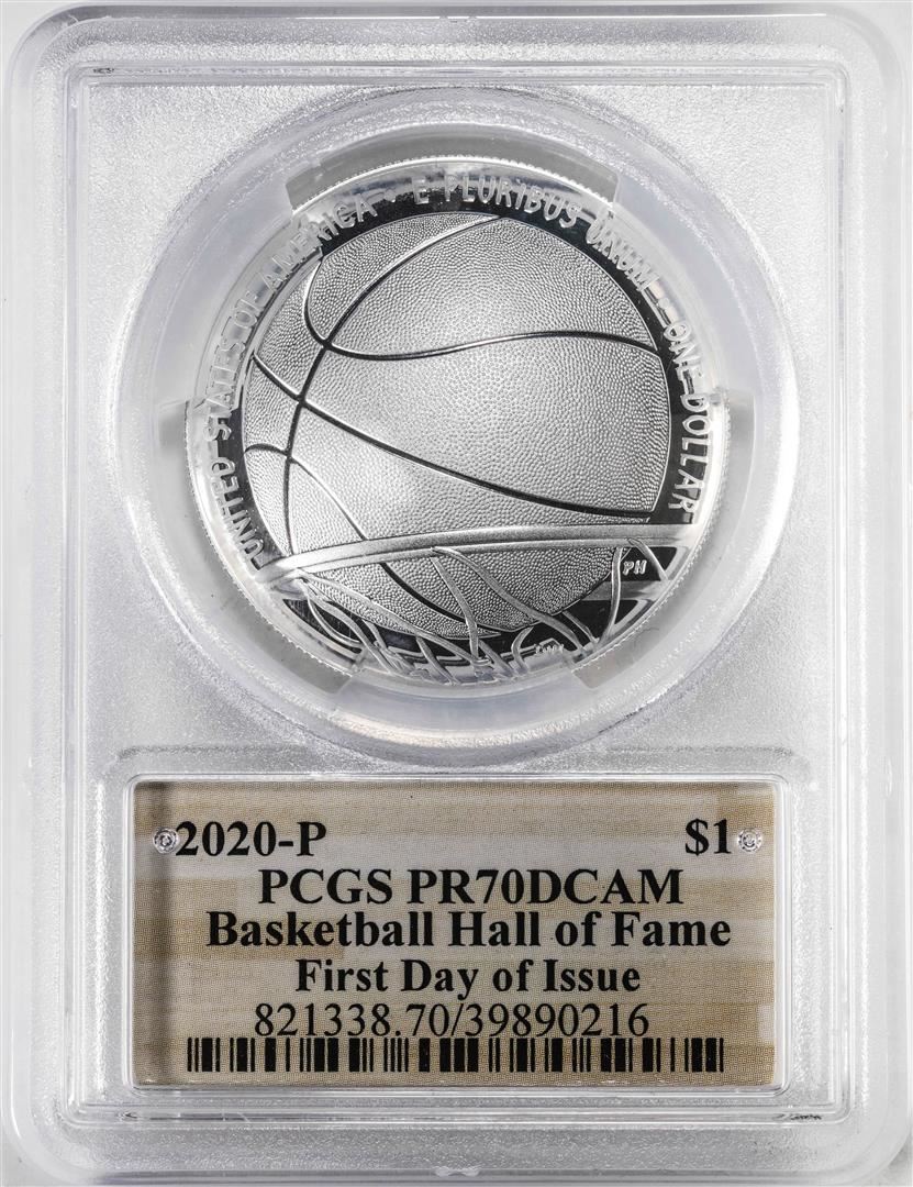 2020-P $1 Basketball Hall of Fame Proof Silver Dollar Coin PCGS PR70DCAM FDOI