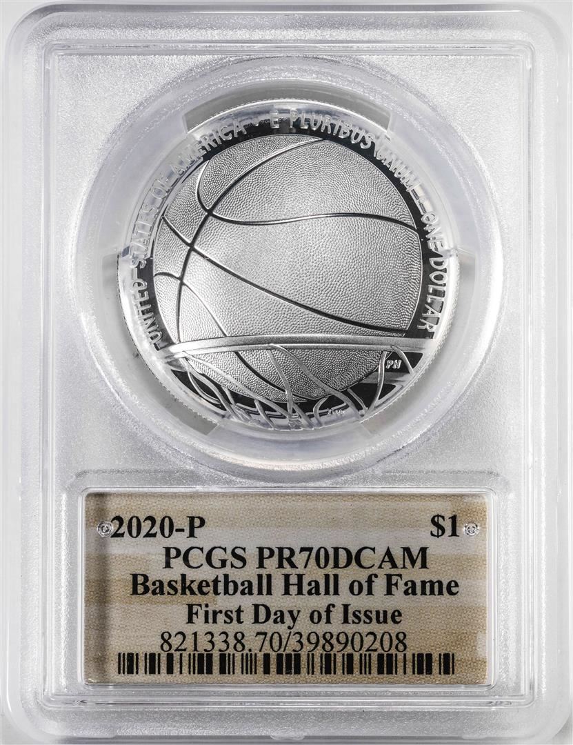 2020-P $1 Basketball Hall of Fame Proof Silver Dollar Coin PCGS PR70DCAM FDOI