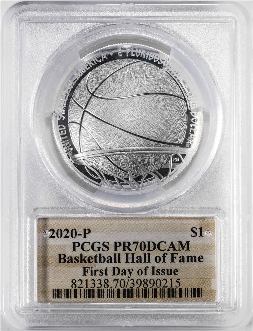 2020-P $1 Basketball Hall of Fame Proof Silver Dollar Coin PCGS PR70DCAM FDOI