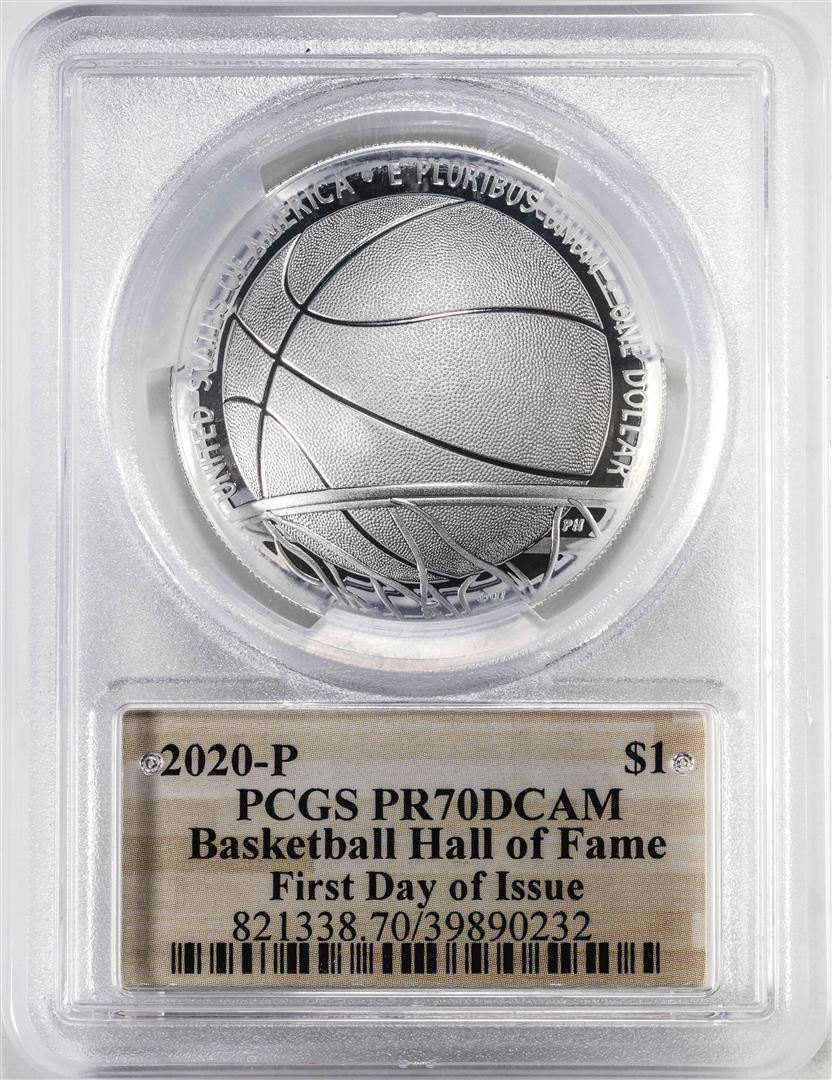 2020-P $1 Basketball Hall of Fame Proof Silver Dollar Coin PCGS PR70DCAM FDOI