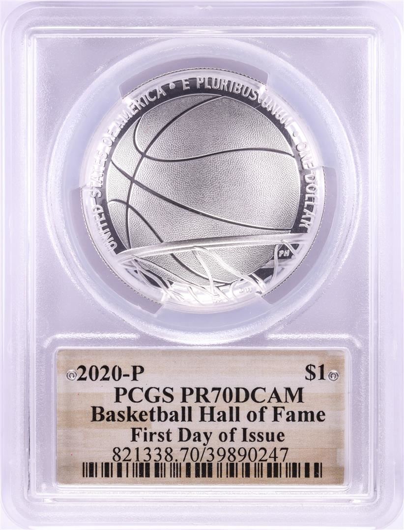 2020-P $1 Basketball Hall of Fame Silver Dollar Coin PCGS PR70DCAM First Day of Issue