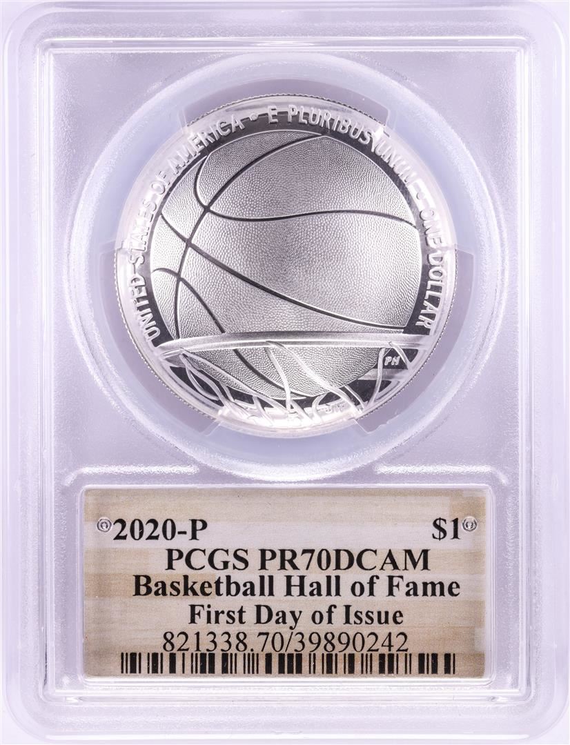 2020-P $1 Basketball Hall of Fame Silver Dollar Coin PCGS PR70DCAM First Day of Issue