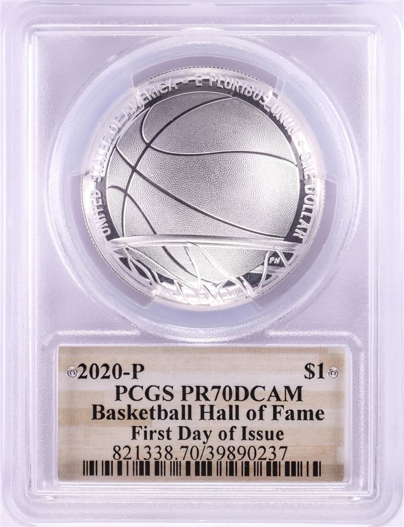 2020-P $1 Basketball Hall of Fame Silver Dollar Coin PCGS PR70DCAM First Day of Issue