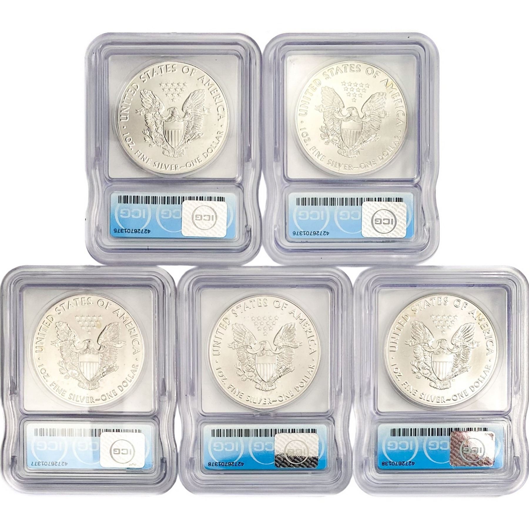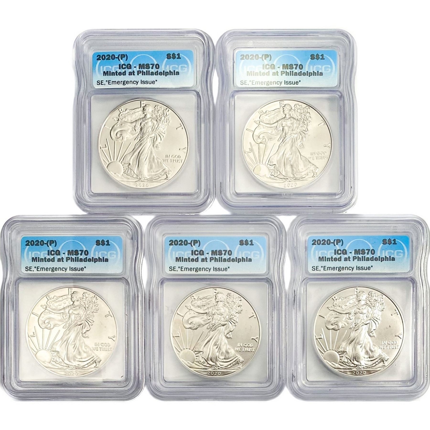 2020-P 5 Coin American Silver Eagle Set ICG MS70