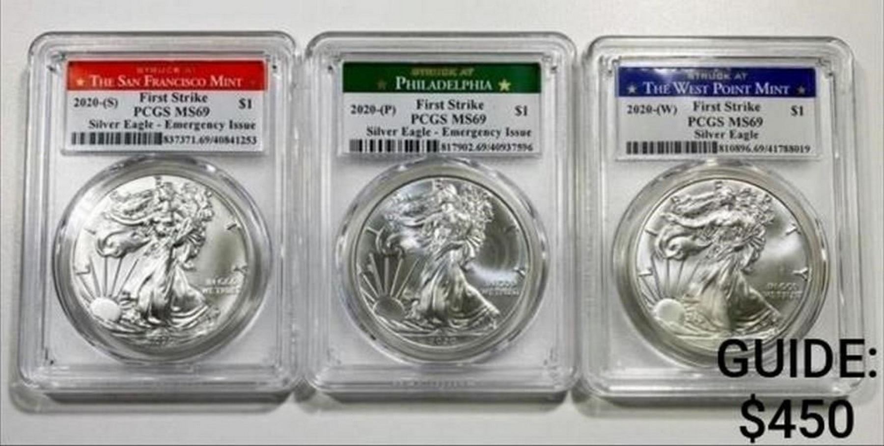 2020-P/S/W 3 Coin American Silver Eagle Set PCGS