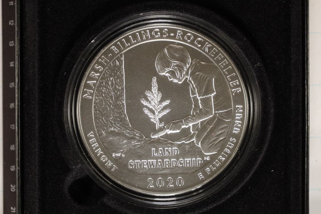 MARSH-BILLINGS-ROCKEFELLER NATIONAL PARK. IN ORIGINAL US MINT PACKAGING WITH CERTIFICATE, COIN IS UNC. THIS IS THE NUMISMATIC VERSION WITH THE "P" MINT MARK AND ALTHOUGH IT IS NOT MENTIONED IT HAS A BURNISHED FINISH AND