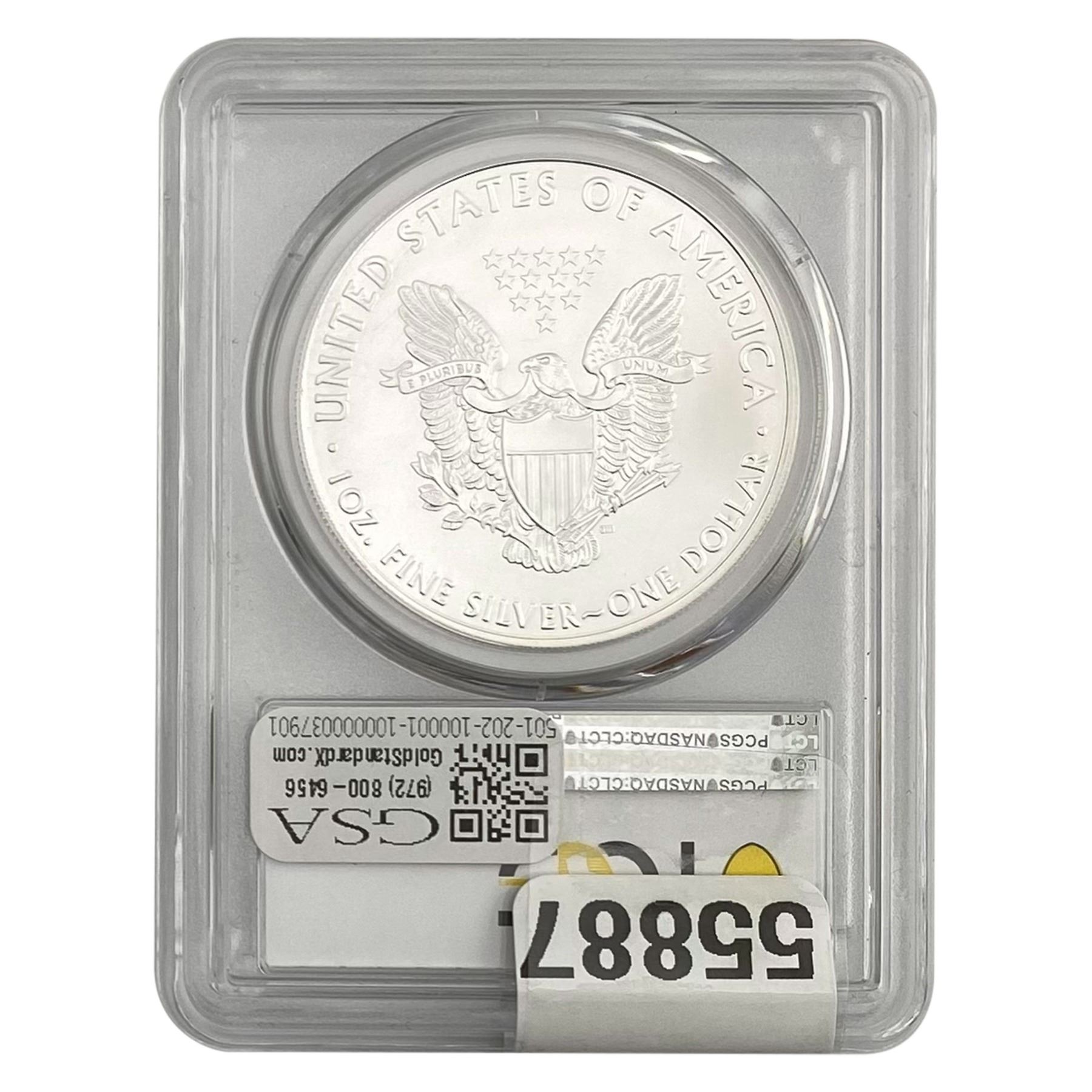 e. Coins sold referencing a third-party grading service are sold “AS IS” without any express or implied warranty, except for a guarantee by GSA that they are genuine. Removal or alteration of the holder, voids all of Bidder’s claims concerning that Product. Certain warranties may be available from the grading services and Bidders are referred to them for further details: Numismatic Guaranty Corporation (NGC), PO Box 4776, Sarasota, FL 34230, www.ngccoin.com/services/writtenguarantee.asp; Professional Coin Grading Services (PCGS), PO Box 9458, Newport Beach, CA 92658, www.pcgs.com/guarantee.html; ANACS, 6555 S. Kenton St., Ste. 303, Englewood, CO 80111; and Independent Coin Grading Co. (ICG), 7901 East Bellview, Ave., Suite 50, Englewood, CO 80111.
