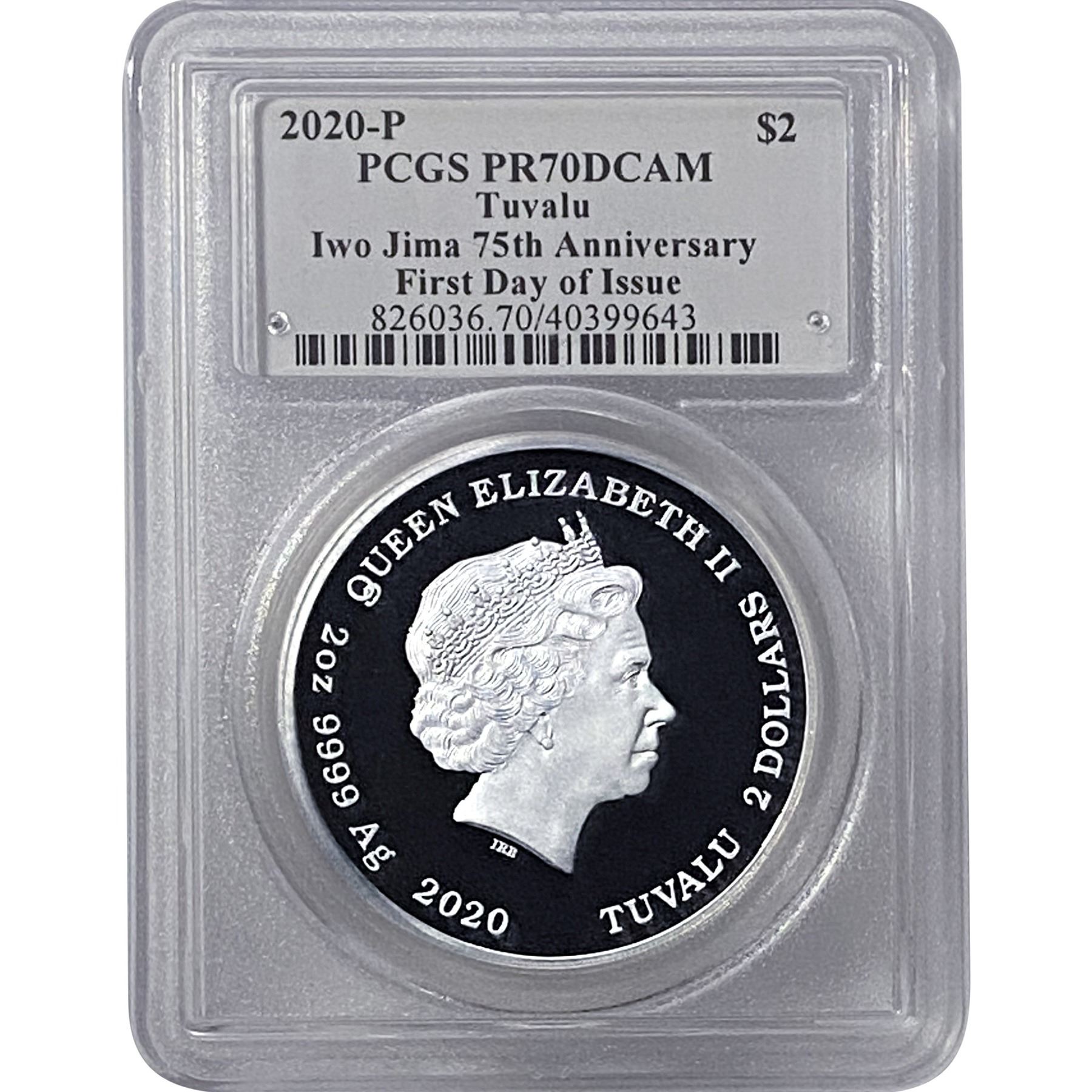 2020-P Tuvalu 2OZ SIlver $2 Iwo Jima 75th Anniv. PR70 DCAM