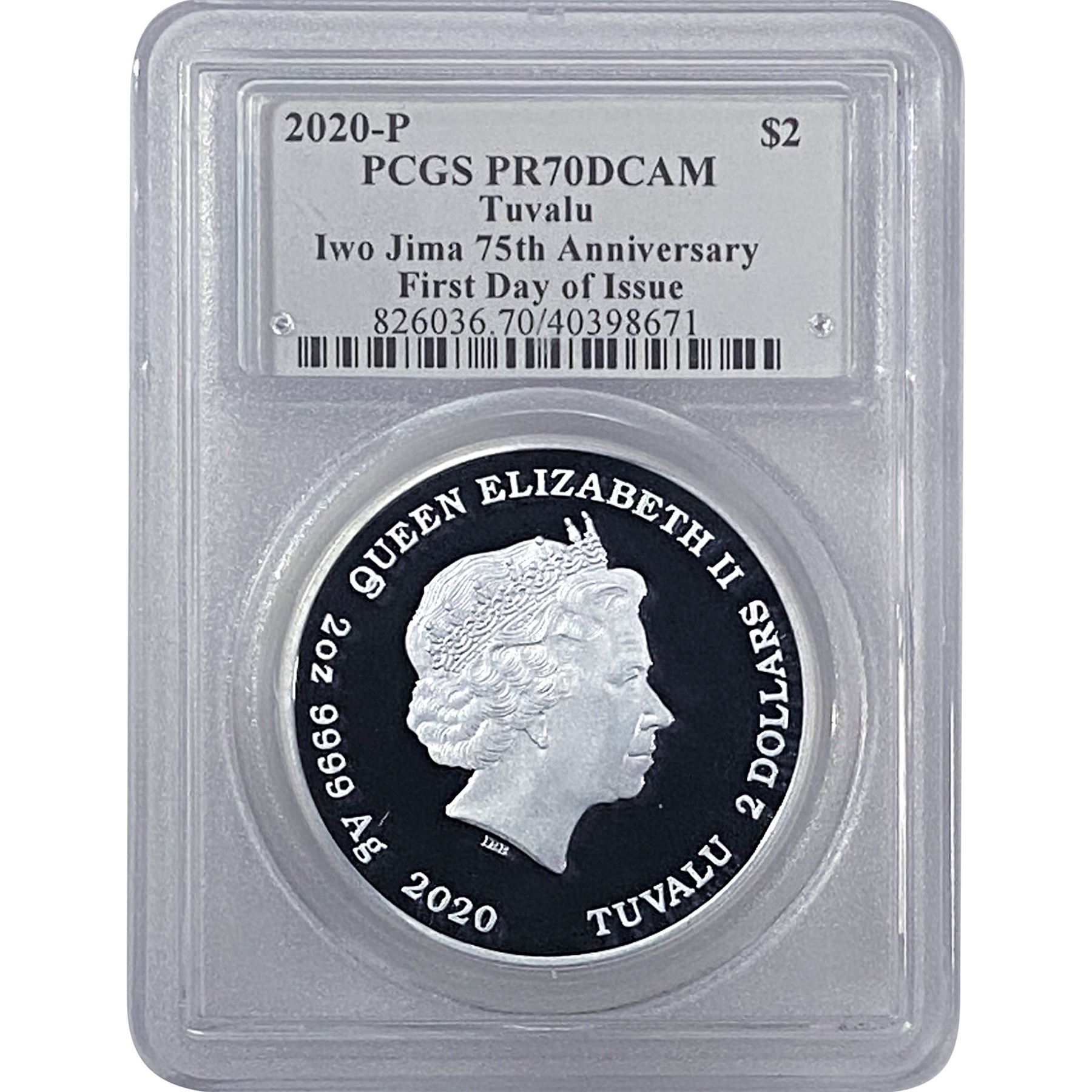 2020-P Tuvalu 2OZ SIlver $2 Iwo Jima 75th Anniv. PR70 DCAM