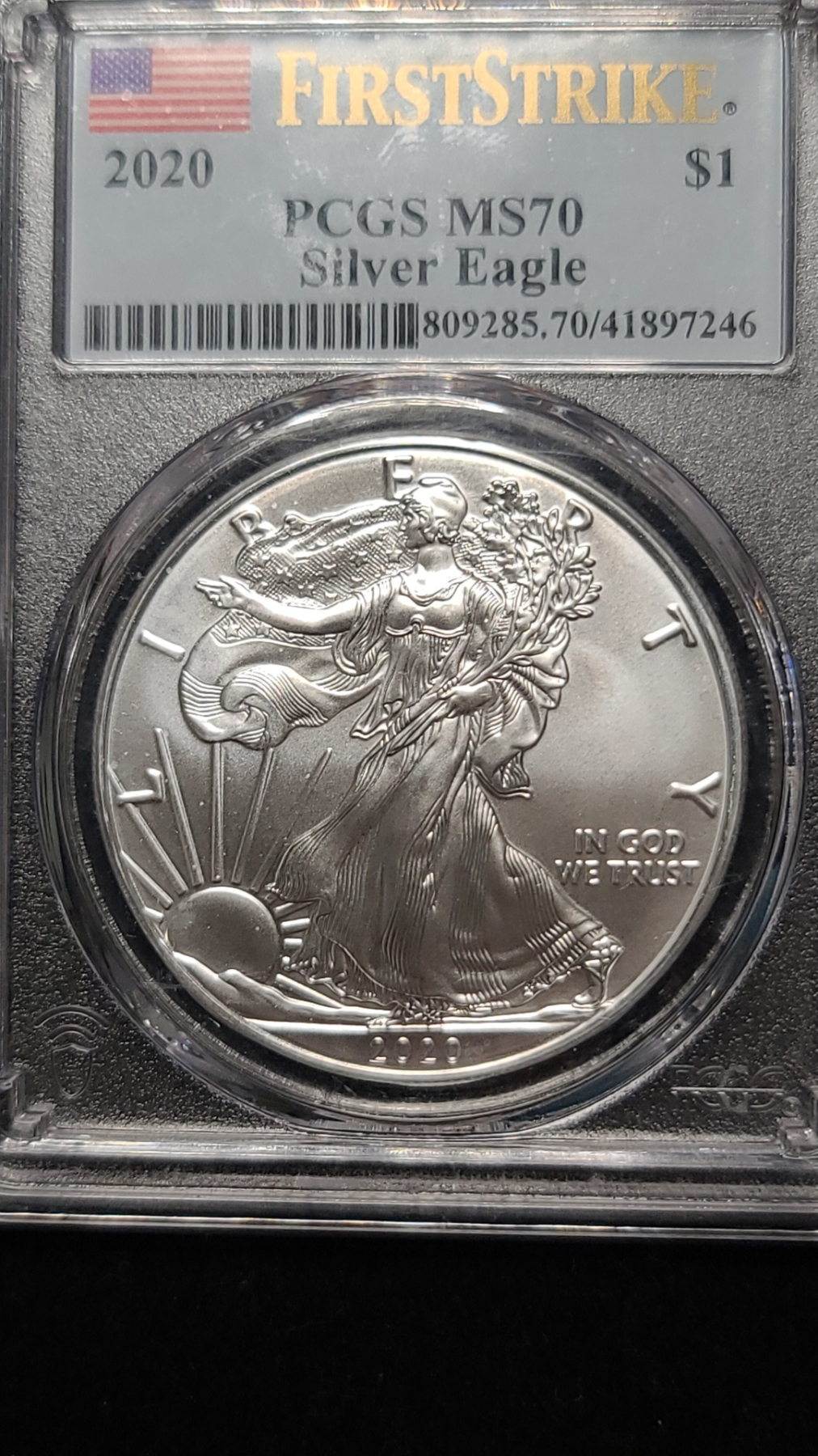 2020 PCGS First Strike MS 70 1 Troy oz 99.9% Silver American Eagle Coin