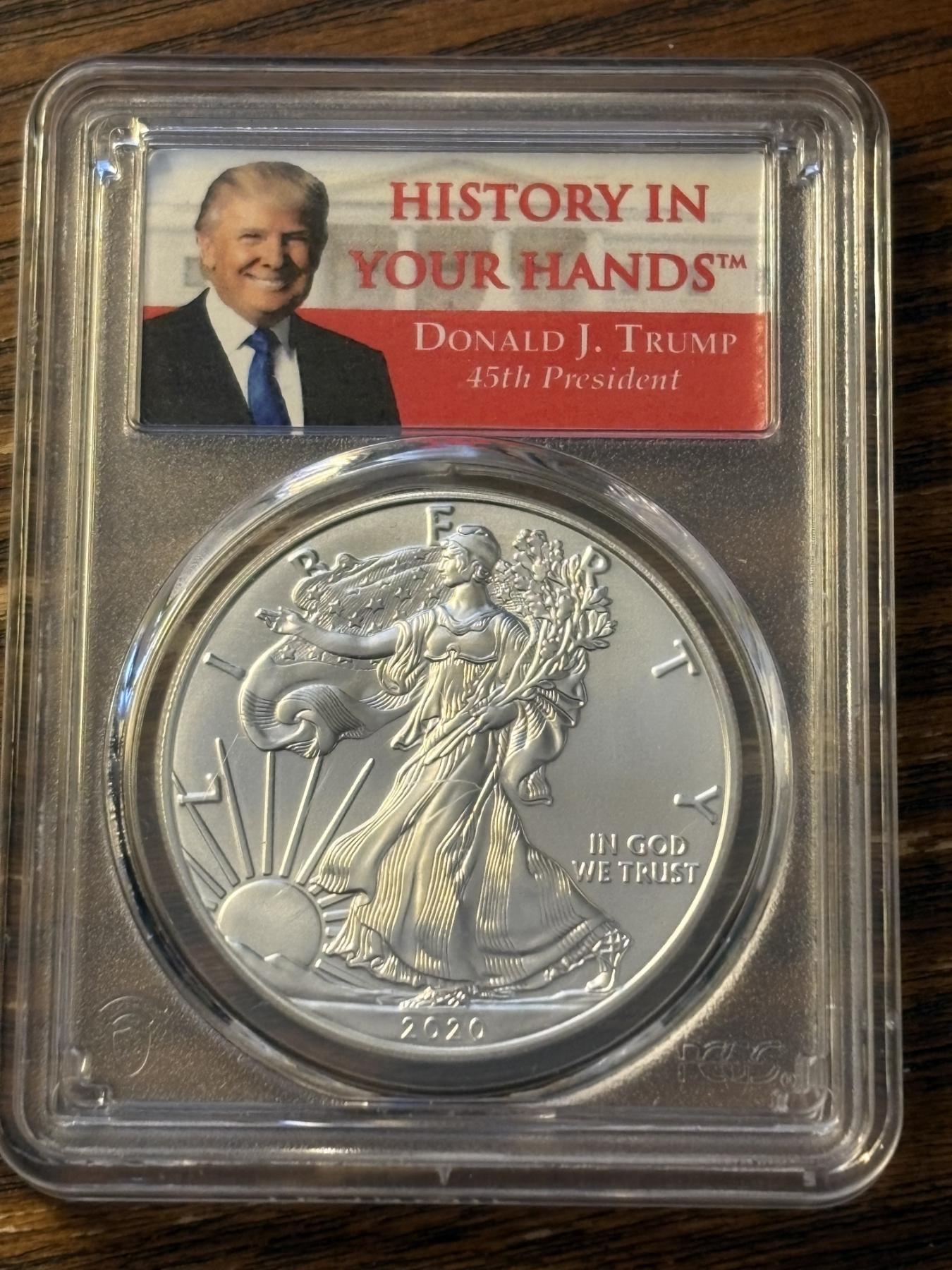 2020 PCGS MS70 Silver Eagle - 1 Oz. Fine Silver -- FV $1.00 - In PCGS Trump Coin Holder - History in Your Hands - Donald J. Trump - 45th President