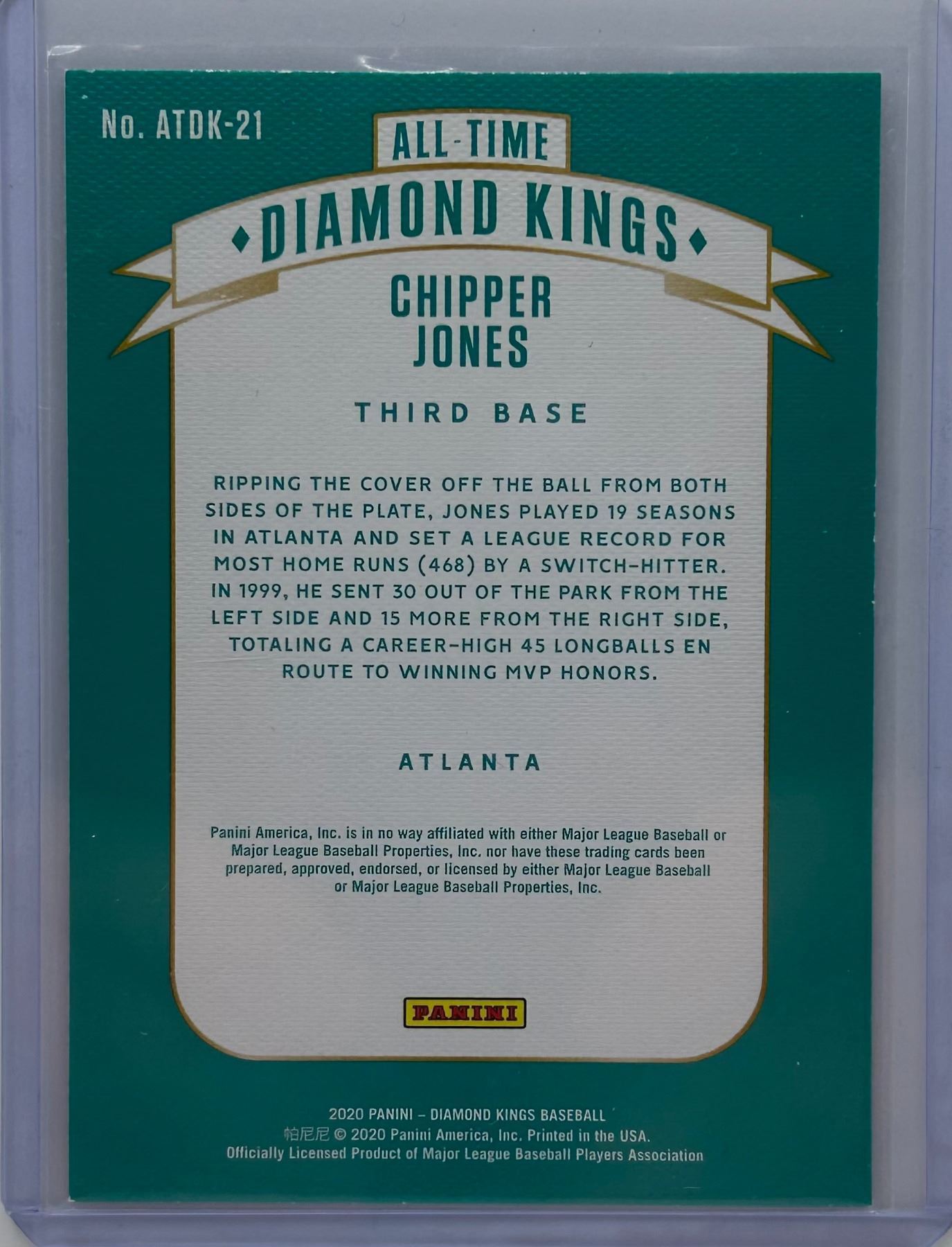 2020 Panini Diamond Kings Chipper Jones #ATDK-21