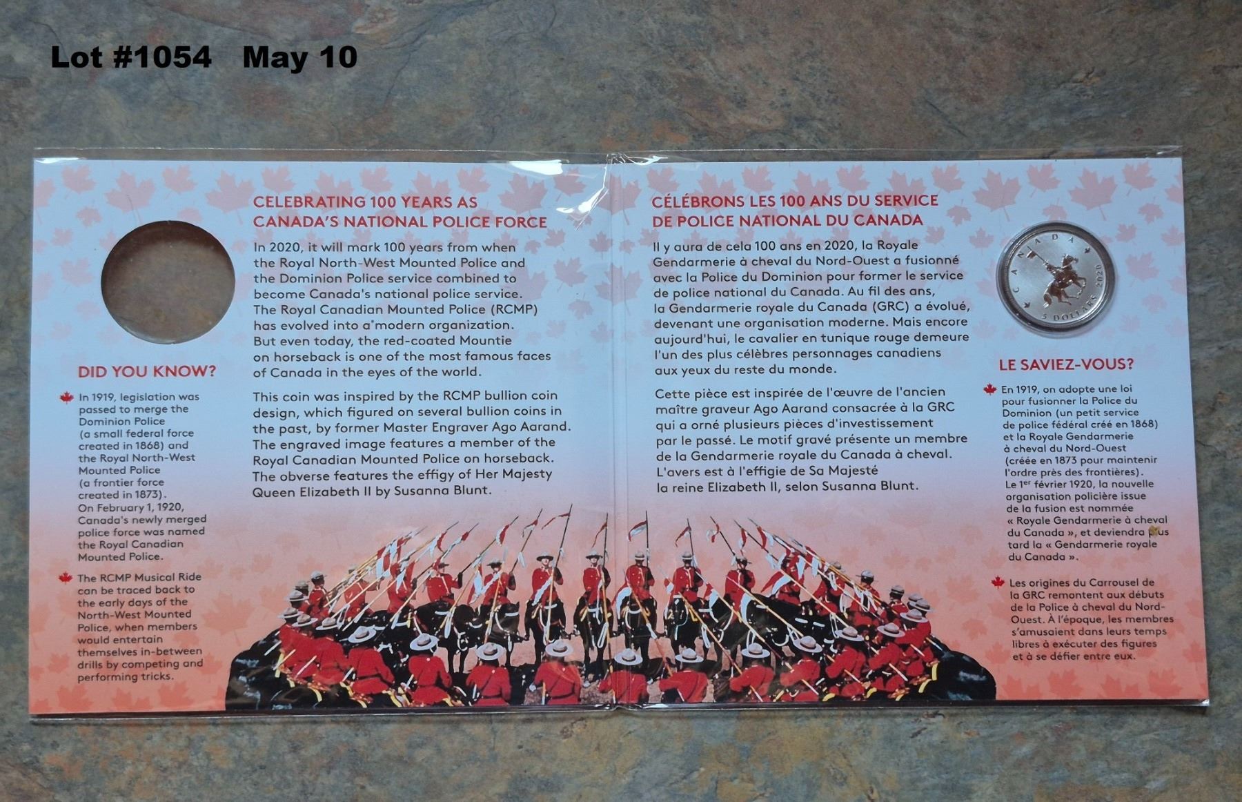 2020 RCMP 100 yrs - $5 dollar Coin. 99.99 Pure Fine Silver.