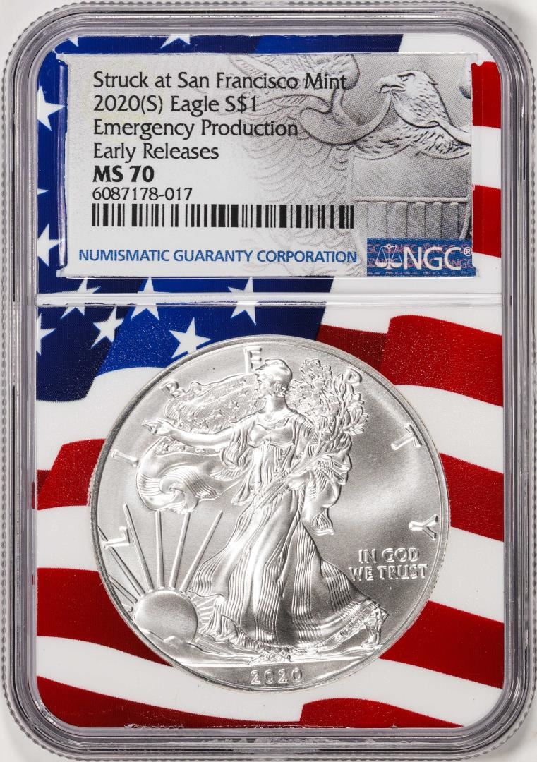 2020(S) $1 American Silver Eagle Coin NGC MS70 Early Releases Mint Flag Core