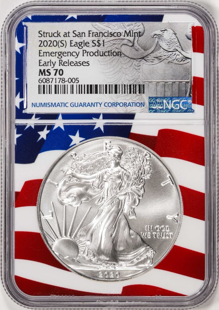 2020(S) $1 American Silver Eagle Coin NGC MS70 Early Releases Mint Flag Core