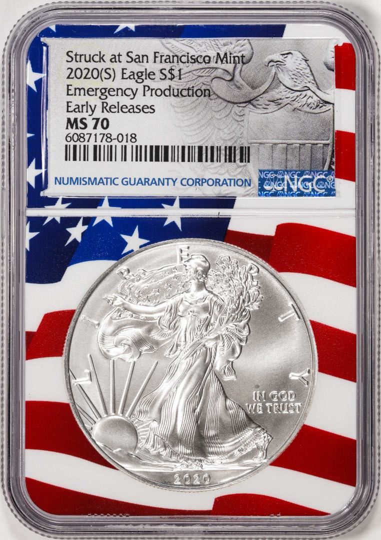 2020(S) $1 American Silver Eagle Coin NGC MS70 Early Releases Mint Flag Core