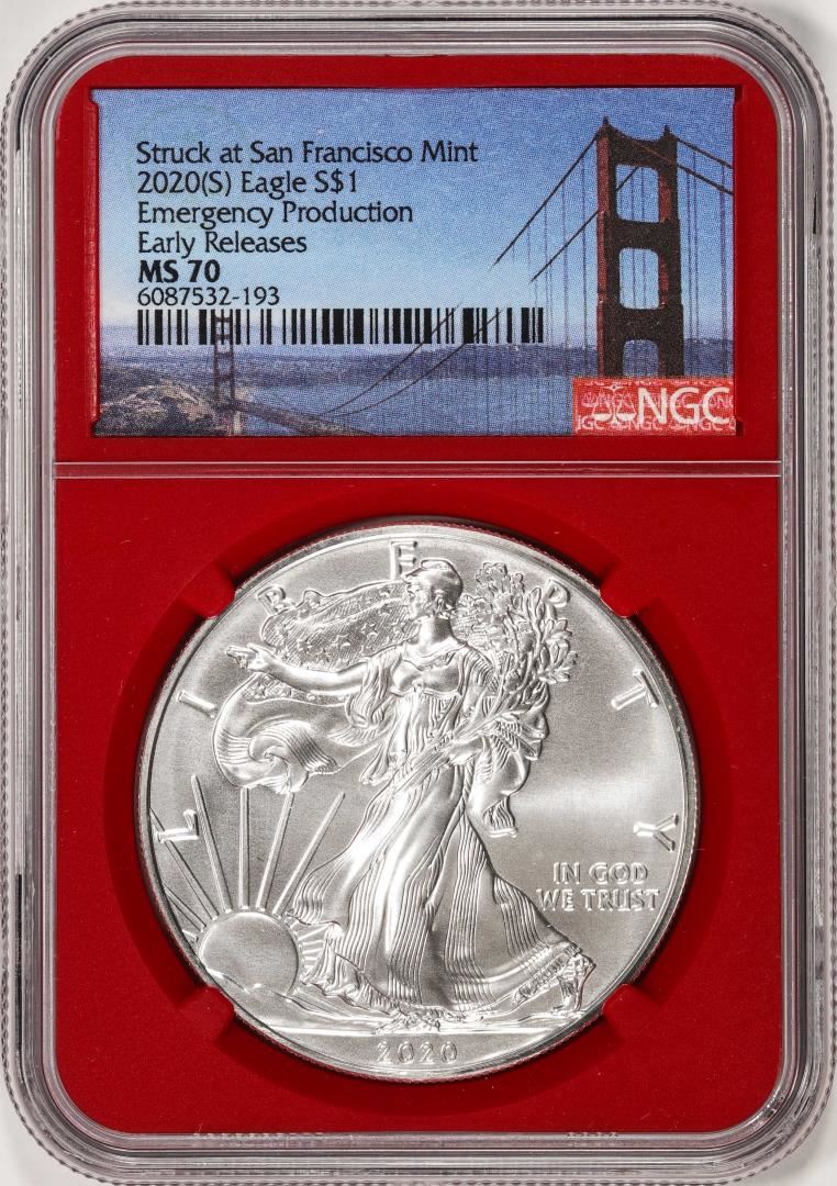2020(S) $1 American Silver Eagle Coin NGC MS70 Early Releases San Francisco Red Core