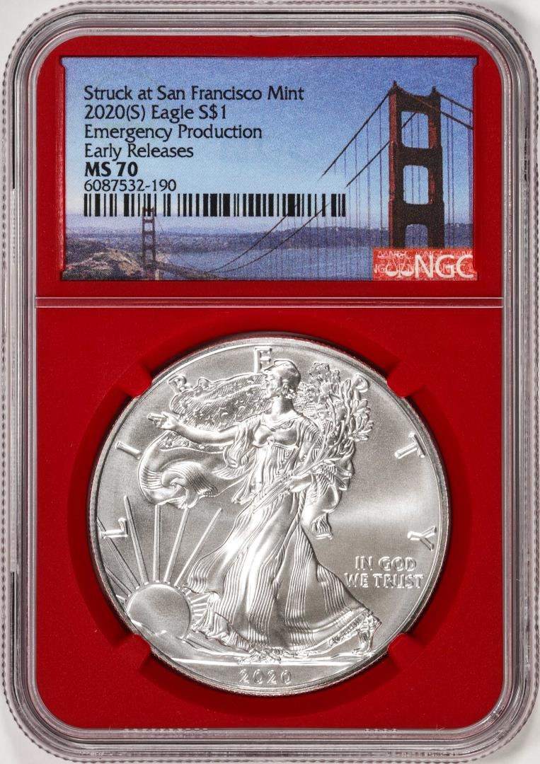 2020(S) $1 American Silver Eagle Coin NGC MS70 Early Releases San Francisco Red Core