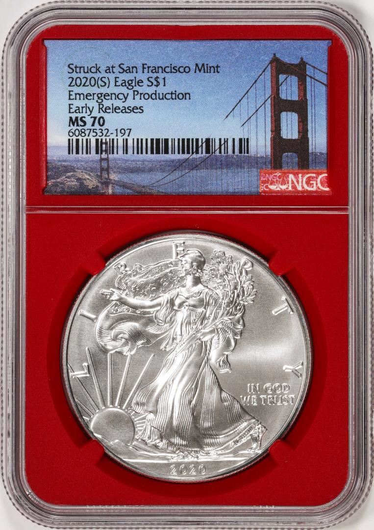2020(S) $1 American Silver Eagle Coin NGC MS70 Early Releases San Francisco Red Core