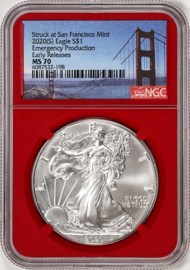 2020(S) $1 American Silver Eagle Coin NGC MS70 Early Releases San Francisco Red Core