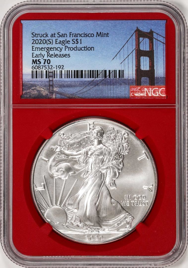 2020(S) $1 American Silver Eagle Coin NGC MS70 Early Releases San Francisco Red Core