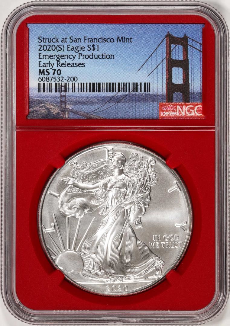 2020(S) $1 American Silver Eagle Coin NGC MS70 Early Releases San Francisco Red Core
