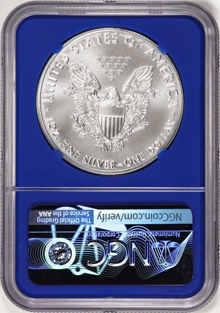 One 2020(S) $1 American Silver Eagle Coin NGC MS70 FDOI San Francisco Mint Blue Core. NGC Certified.