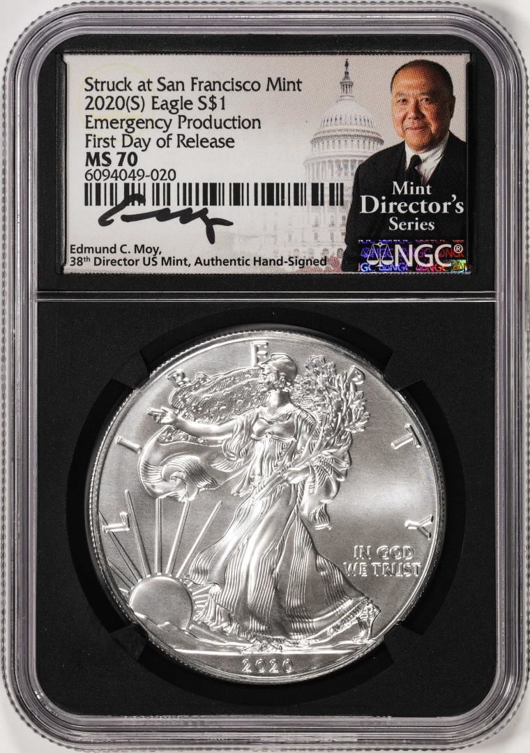 2020(S) $1 American Silver Eagle Coin NGC MS70 First Day of Release Moy Signature