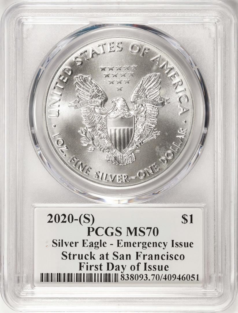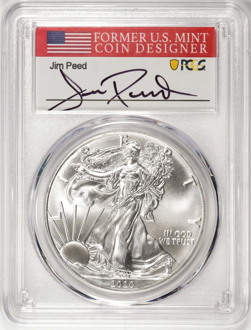 2020-(S) $1 American Silver Eagle Coin PCGS MS70 FDOI S.F. Mint Jim Peed Signature
