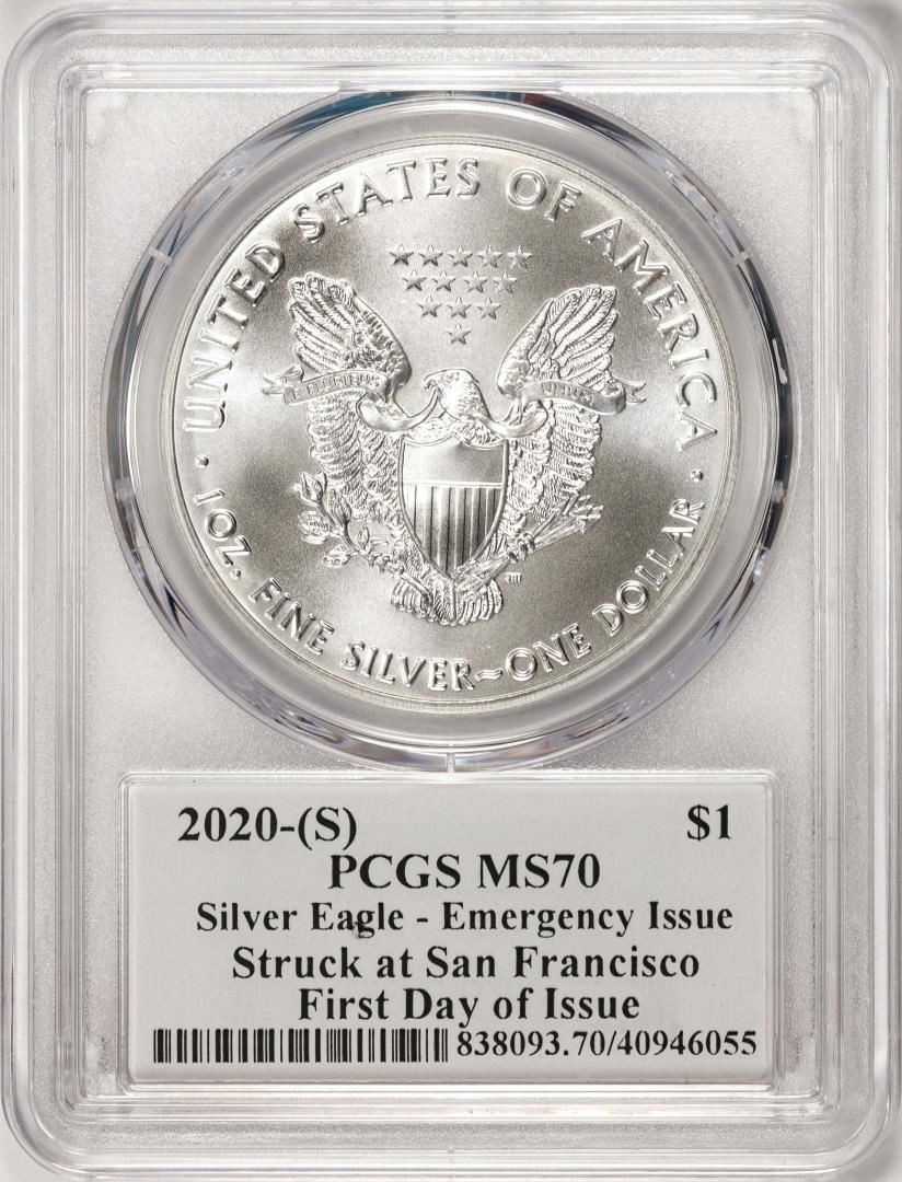 One 2020-(S) $1 American Silver Eagle Coin PCGS MS70 FDOI S.F. Mint Jim Peed Signature. PCGS Graded.