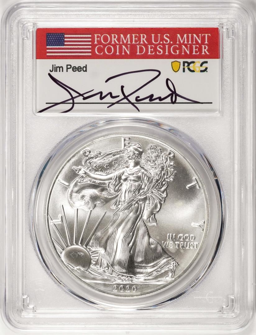 2020-(S) $1 American Silver Eagle Coin PCGS MS70 FDOI S.F. Mint Jim Peed Signature