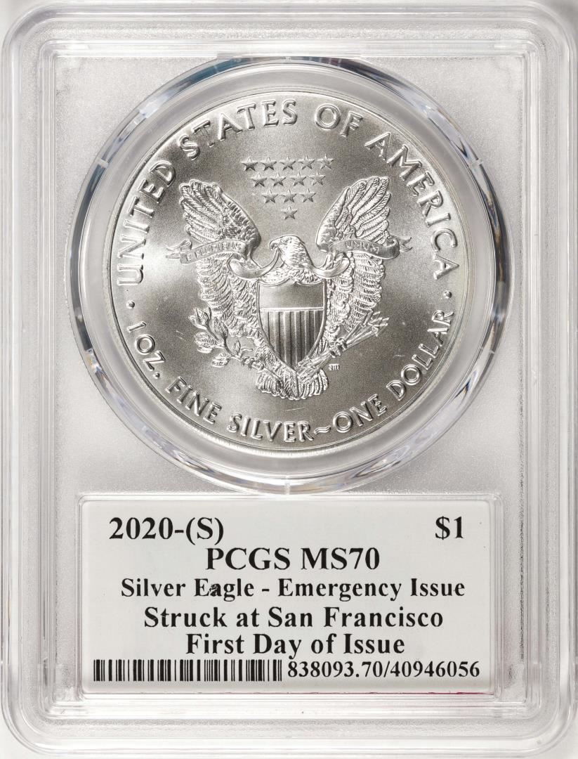 One 2020-(S) $1 American Silver Eagle Coin PCGS MS70 FDOI S.F. Mint Jim Peed Signature. PCGS Graded.
