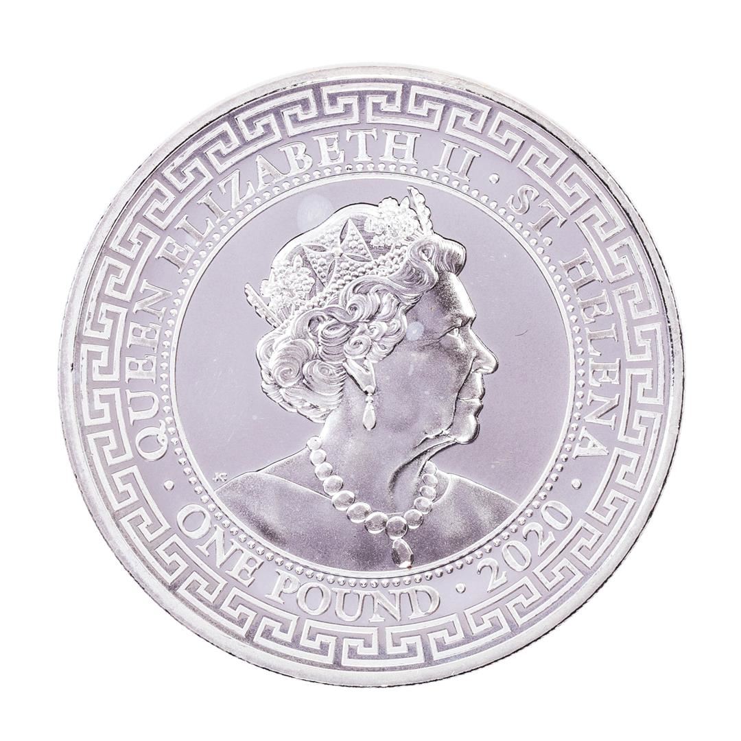 One 2020 Saint Helena Queen Elizabeth II 1 Ounce Silver Trade Dollar.
