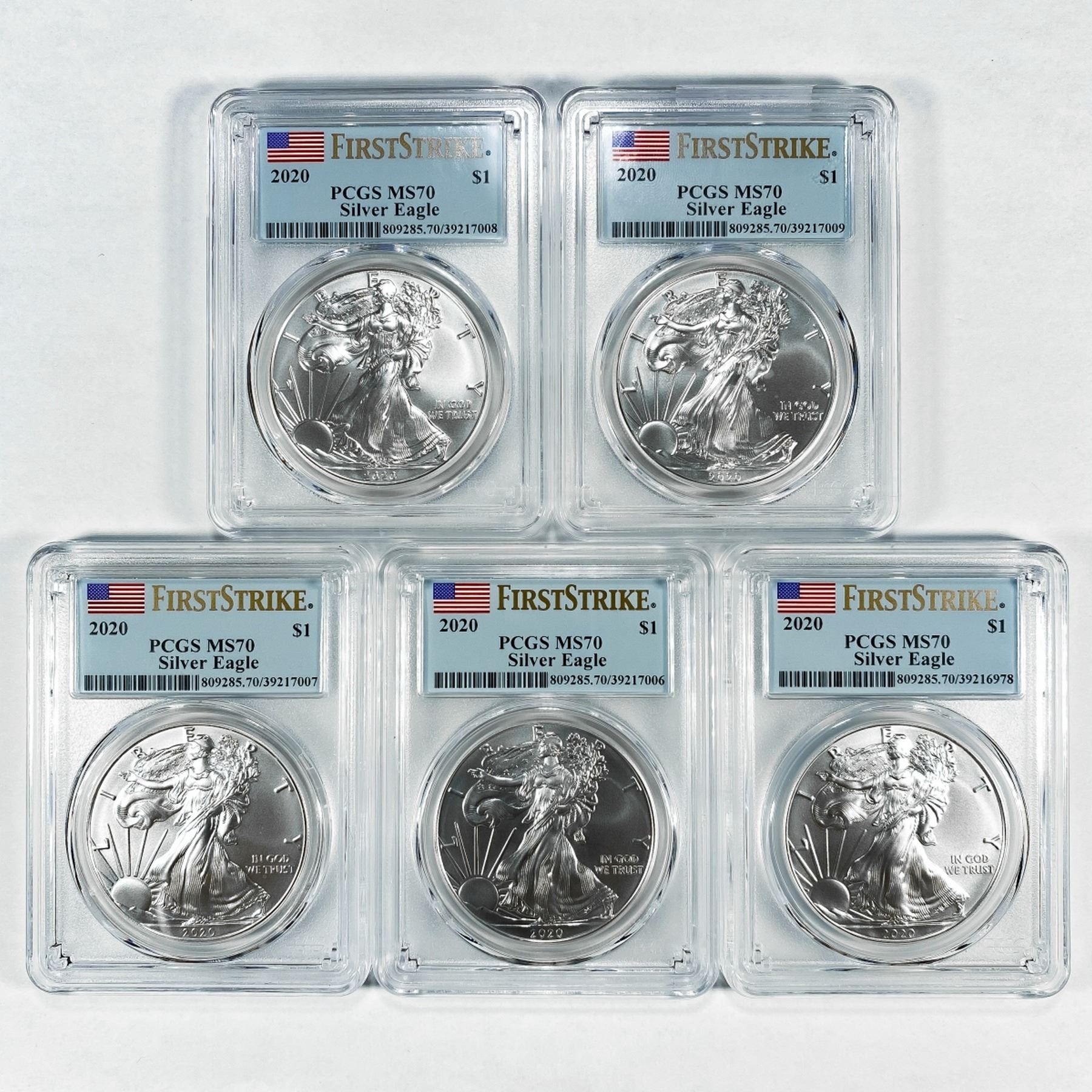 2020 Set (5) American Silver Eagle PCGS MS70