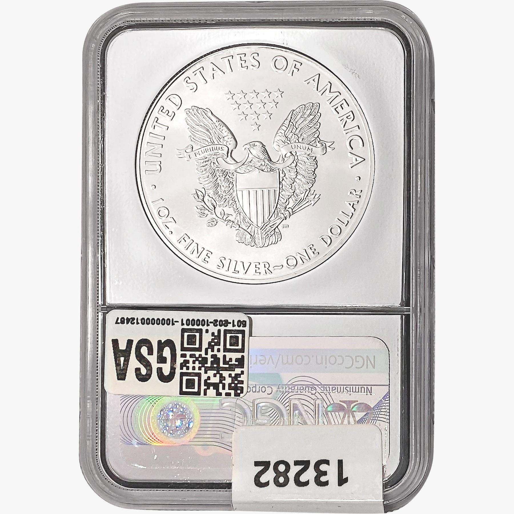 e. Coins sold referencing a third-party grading service are sold “AS IS” without any express or implied warranty, except for a guarantee by GSA that they are genuine. Removal or alteration of the holder, voids all of Bidder’s claims concerning that Product. Certain warranties may be available from the grading services and Bidders are referred to them for further details: Numismatic Guaranty Corporation (NGC), PO Box 4776, Sarasota, FL 34230, www.ngccoin.com/services/writtenguarantee.asp; Professional Coin Grading Services (PCGS), PO Box 9458, Newport Beach, CA 92658, www.pcgs.com/guarantee.html; ANACS, 6555 S. Kenton St., Ste. 303, Englewood, CO 80111; and Independent Coin Grading Co. (ICG), 7901 East Bellview, Ave., Suite 50, Englewood, CO 80111.