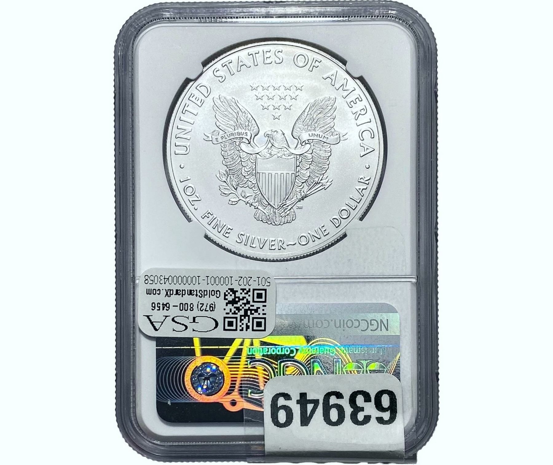 e. Coins sold referencing a third-party grading service are sold “AS IS” without any express or implied warranty, except for a guarantee by GSA that they are genuine. Removal or alteration of the holder, voids all of Bidder’s claims concerning that Product. Certain warranties may be available from the grading services and Bidders are referred to them for further details: Numismatic Guaranty Corporation (NGC), PO Box 4776, Sarasota, FL 34230, www.ngccoin.com/services/writtenguarantee.asp; Professional Coin Grading Services (PCGS), PO Box 9458, Newport Beach, CA 92658, www.pcgs.com/guarantee.html; ANACS, 6555 S. Kenton St., Ste. 303, Englewood, CO 80111; and Independent Coin Grading Co. (ICG), 7901 East Bellview, Ave., Suite 50, Englewood, CO 80111.