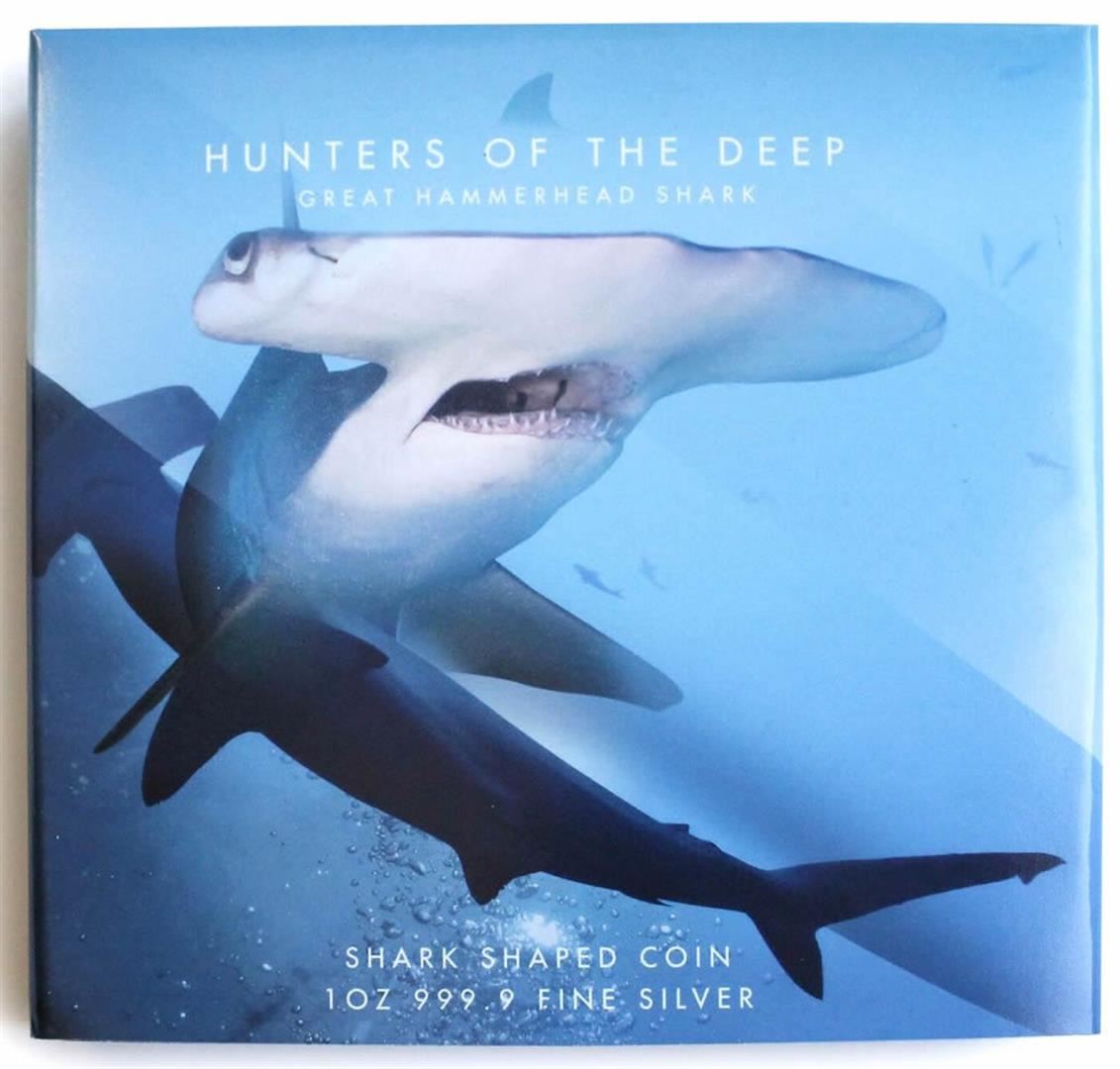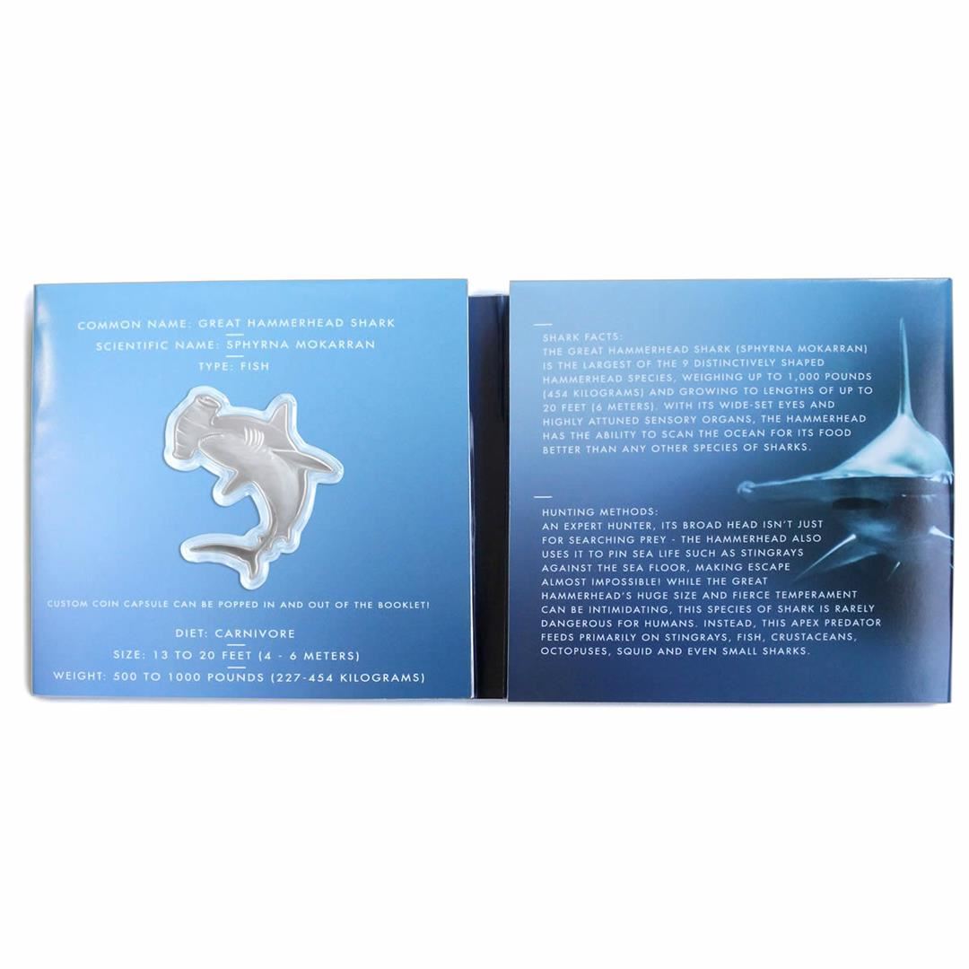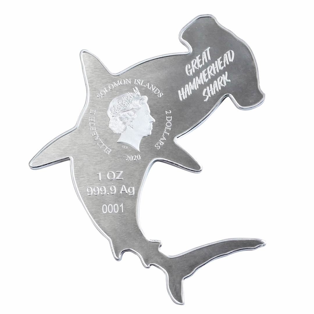One 2020 Solomon Island $2 Hunters of the Deep 1 oz Silver Hammerhead Shark Coin.