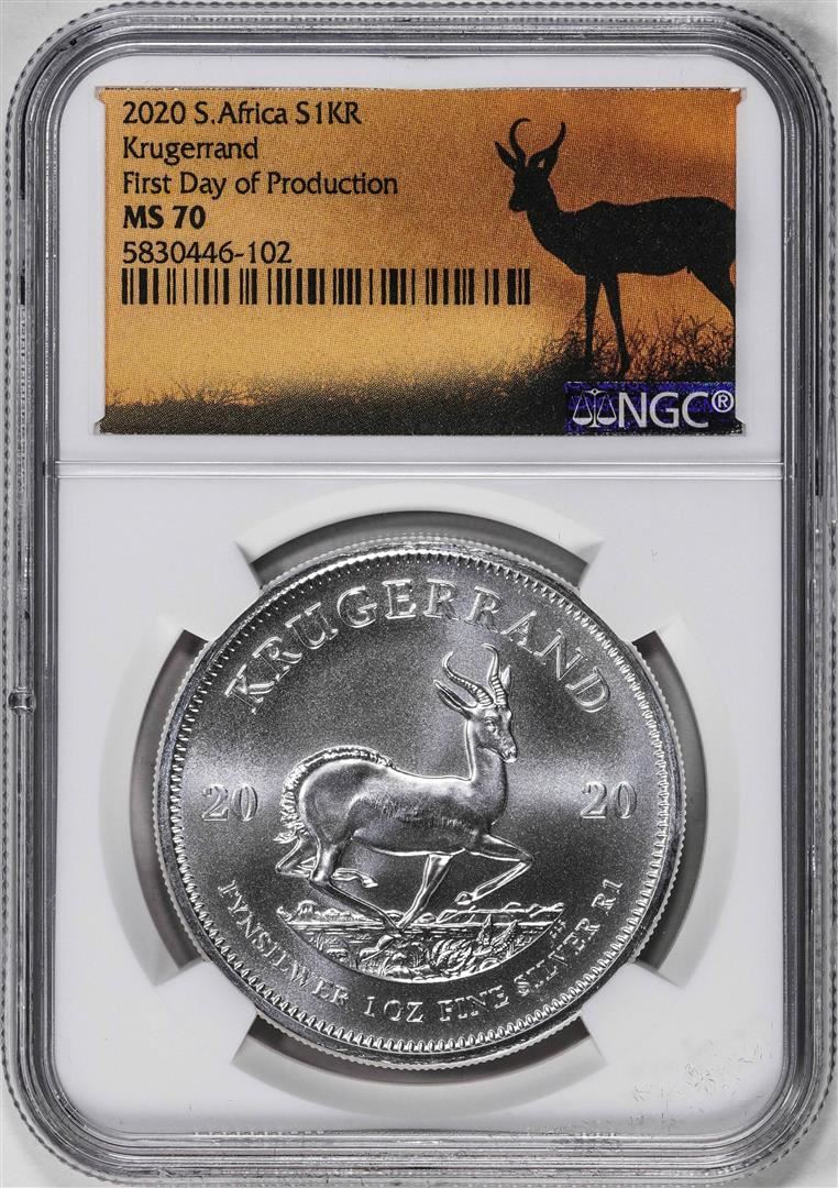 2020 South Africa Krugerrand Silver Coin NGC MS70 First Day of Production
